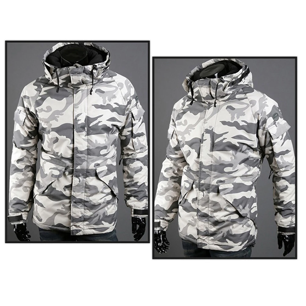 Модная зимняя теплая мужская куртка, утолщенная куртка с камуфляжным принтом и карманами, пальто на молнии с длинным рукавом для мужской одежды