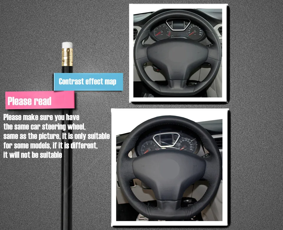 Пожалуйста, прочитайте перед покупкой (если вам нужны другие продукты, вы также можете проконсультироваться со службой поддержки клиентов) Перед покупкой, пожалуйста, проверьте рулевое колесо автомобиля и сравните с рулевым колесом на картинке. (Наша крышка рулевого колеса является индивидуальным продуктом, если есть какие-либо различия, она не будет применяться)! А Этот товар-чехол для руля, а не руль! А Этот продукт подходит для Citroen Elysee C-Elysee 2014 New Elysee Peugeot 301 других моделей. Если у вас есть какие-либо вопросы, пожалуйста, сначала свяжитесь со службой поддержки клиентов