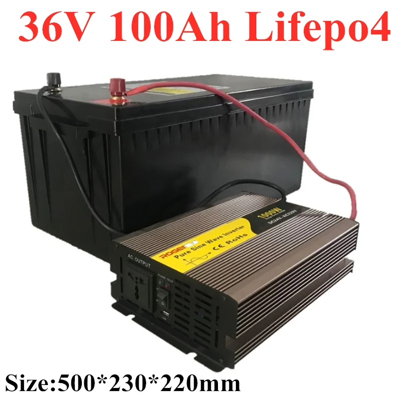 Водонепроницаемая литий-ионная батарея 36 в 100 Ач Lifepo4 с BMS для скутера, велосипеда, трехколесного велосипеда, солнечная система хранения, тележка для гольфа + зарядное устройство 10 А