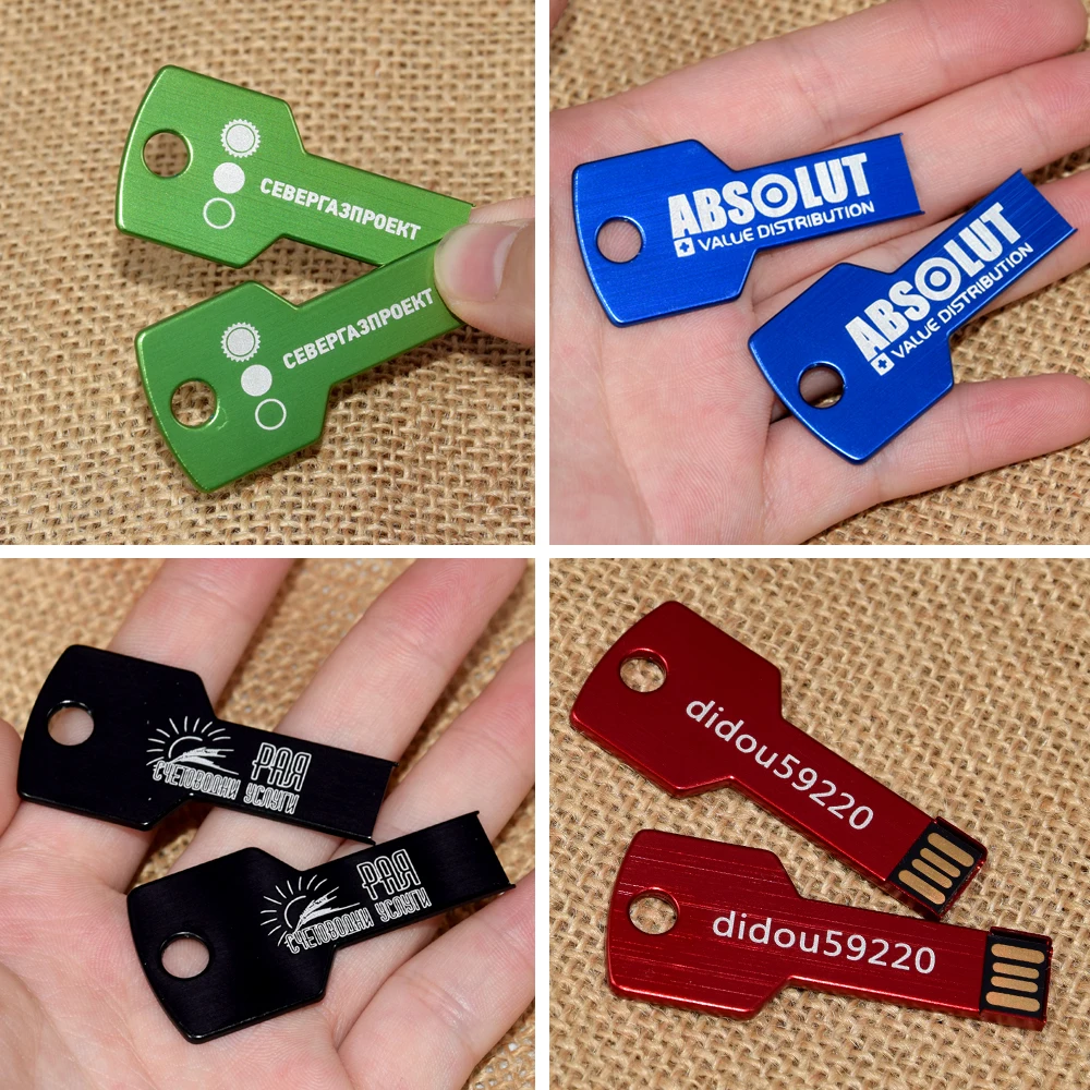 10 шт.лот USB 2,0, 10 шт., USB флеш-накопитель с логотипом на заказ, 4 ГБ, 8 ГБ, 16 ГБ, 32 ГБ, металлический накопитель, флешка, карта памяти, форма ключа