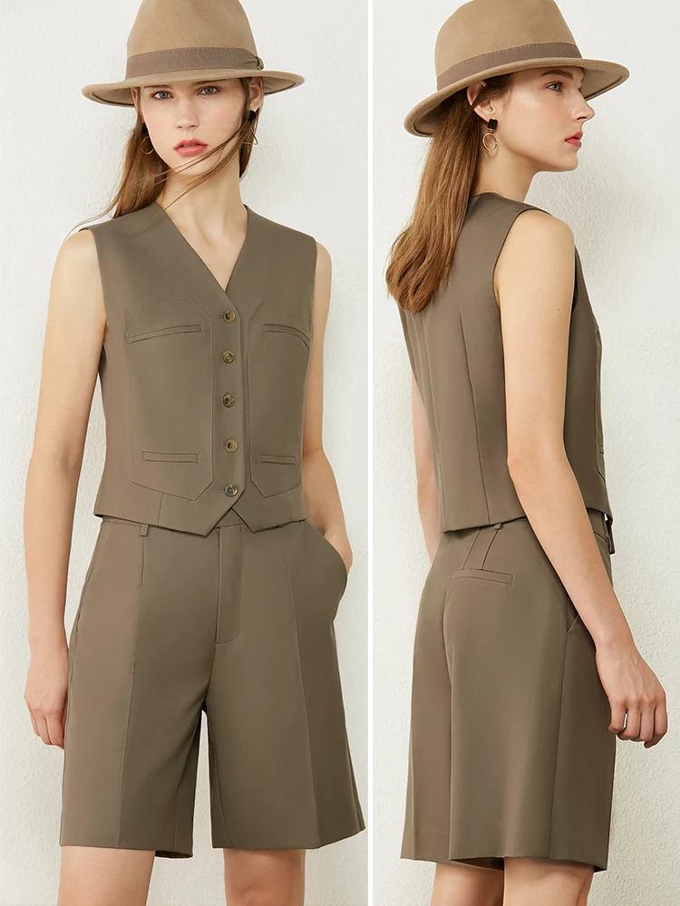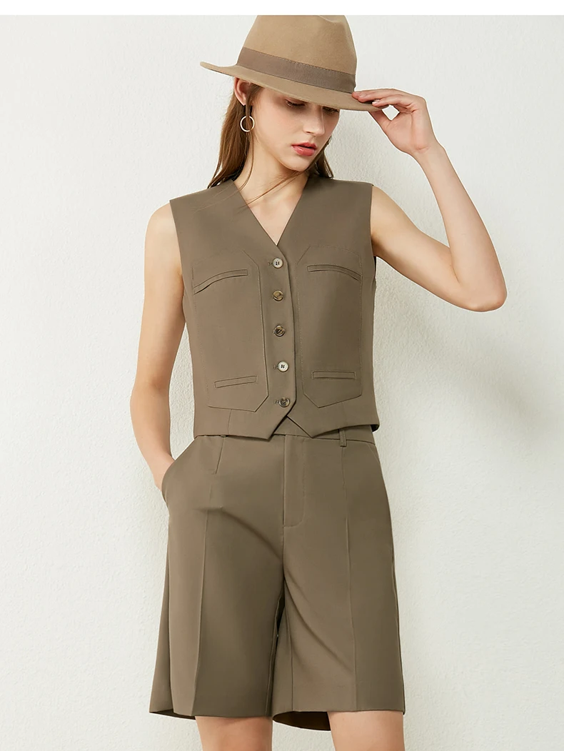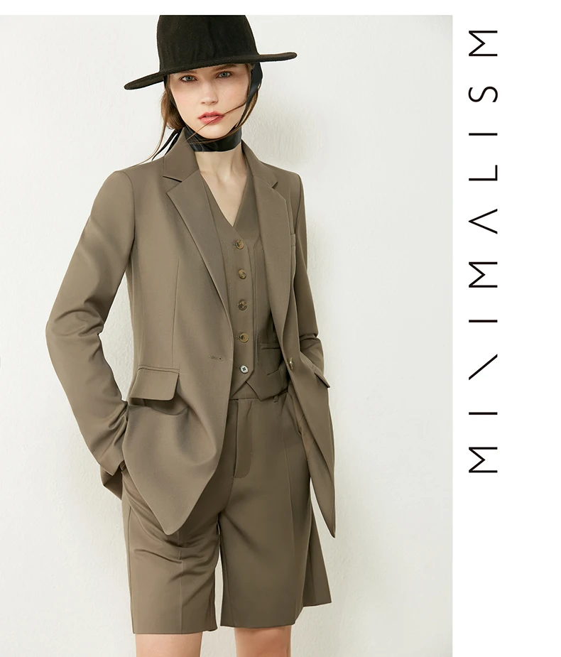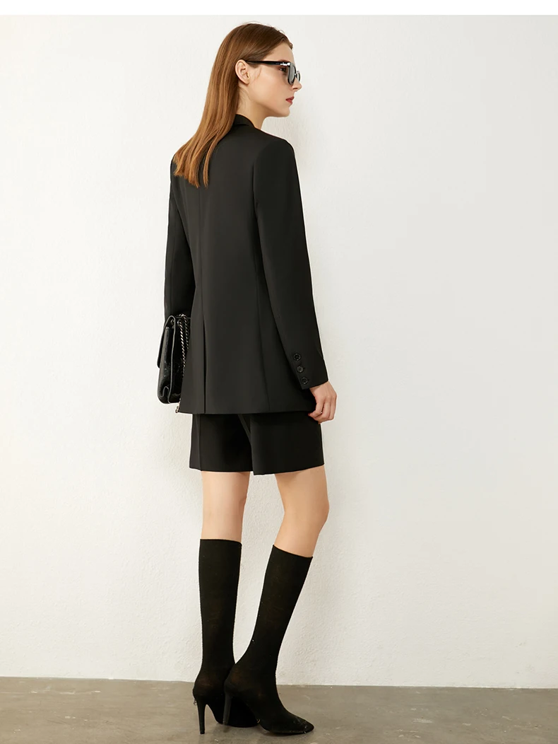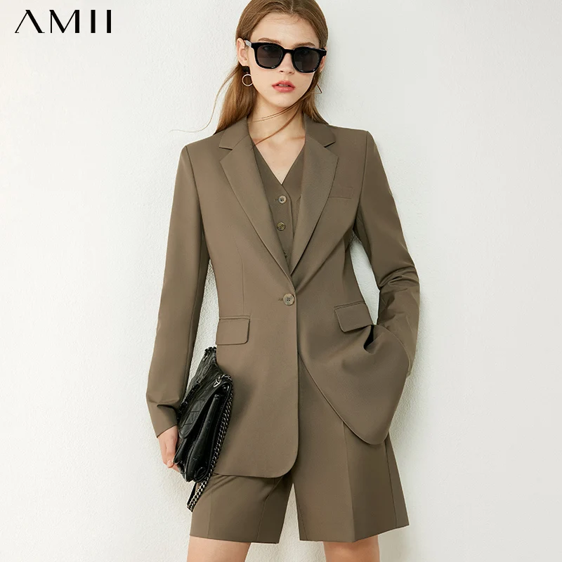 Женский костюм с шортами Amii, однотонный блейзер с лацканами и высокой талией, свободный, осенний, 12070585