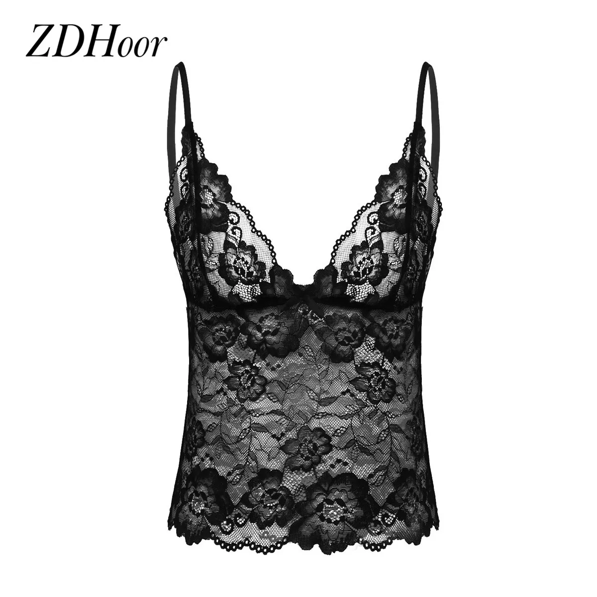 Сексуальное эротическое нижнее белье, Мужская кружевная Прозрачная майка на бретелях с глубоким V-образным вырезом, Черная майка, кроп-топ, ночное белье