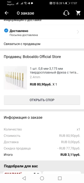 Очень быстрая доставка. Заказывал 2 фрезы. Были в специальном кейсе. Продавца советую сам буду ещё заказывать.