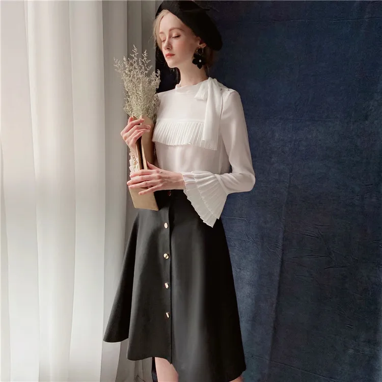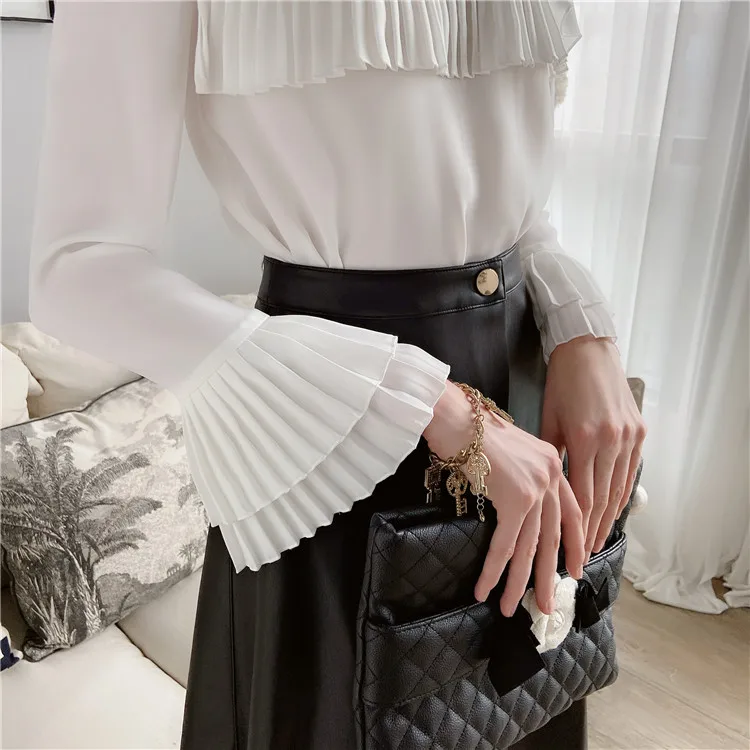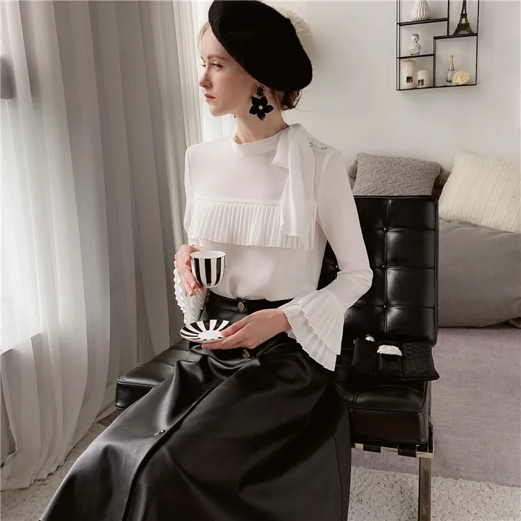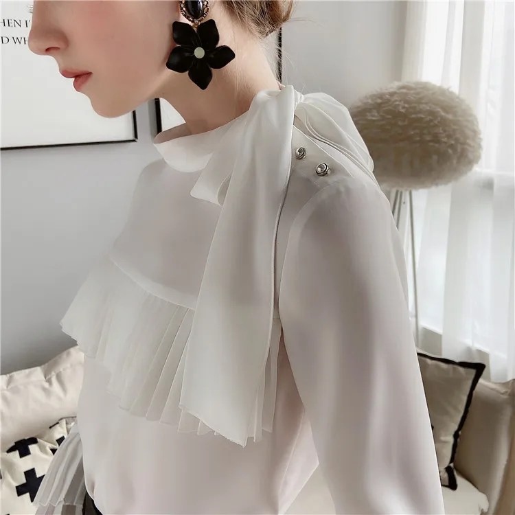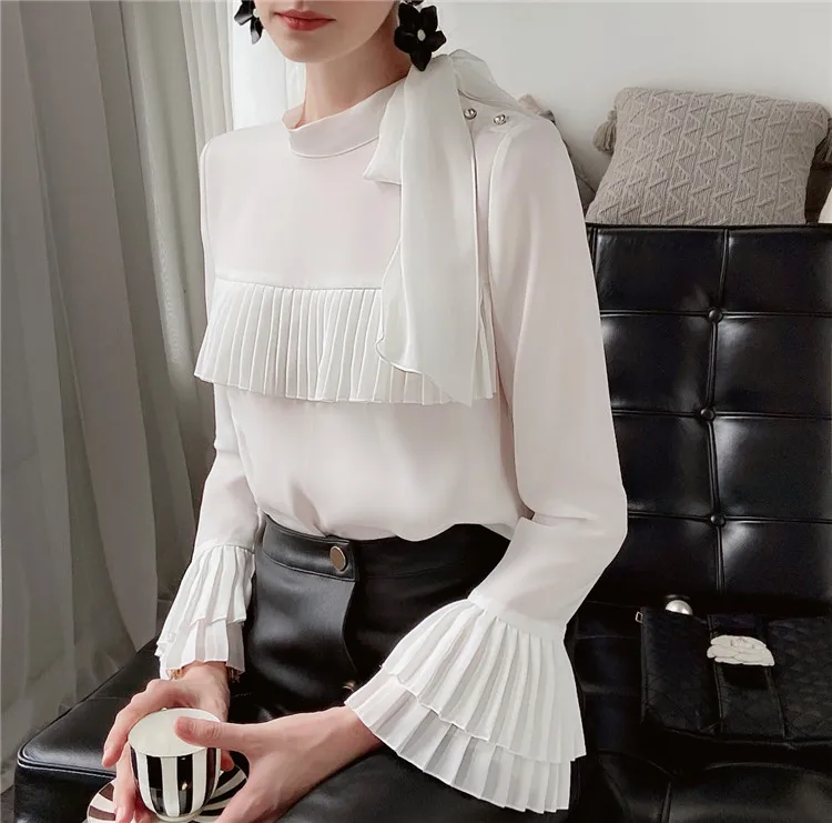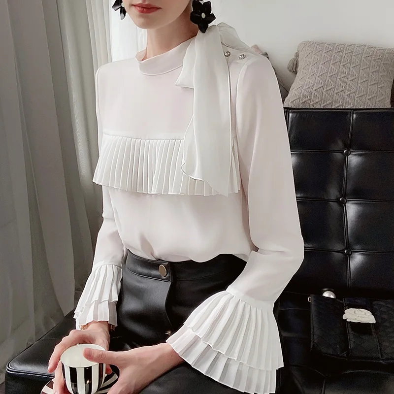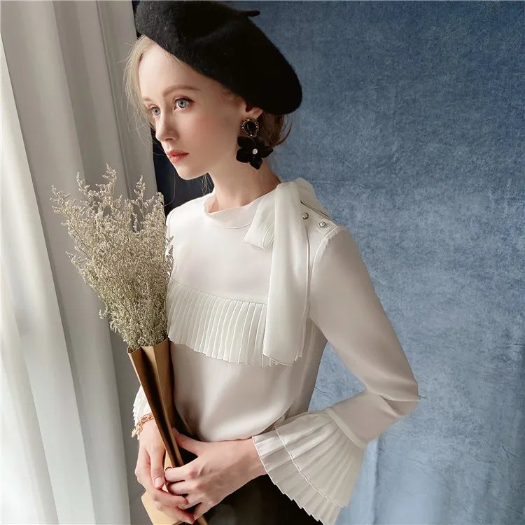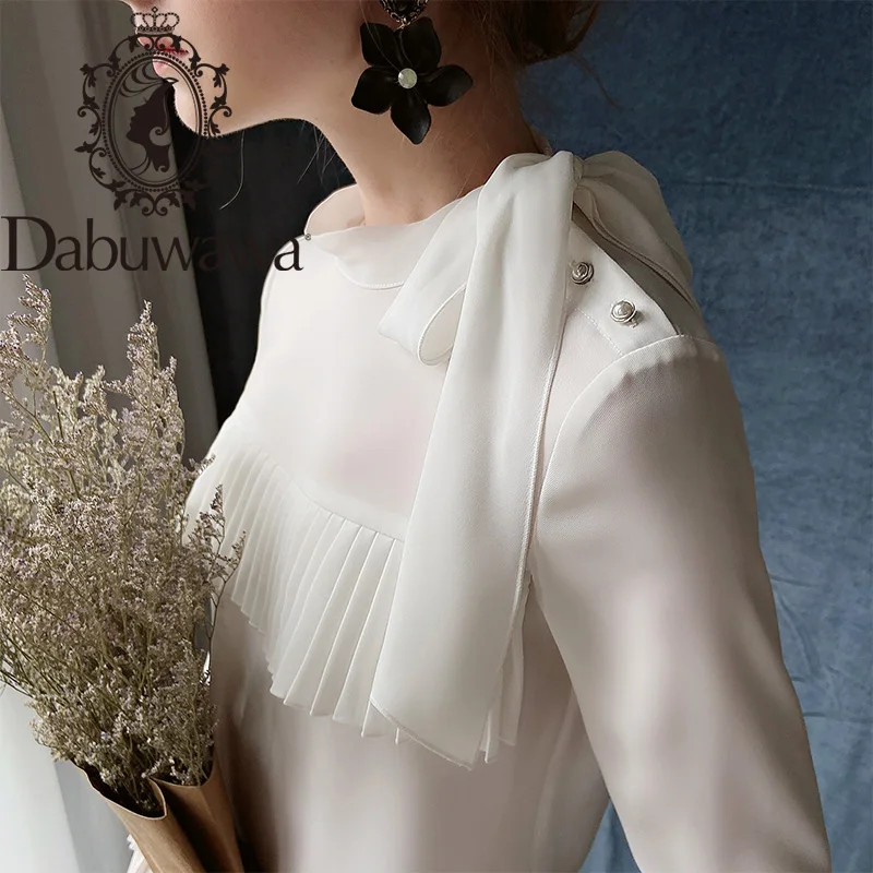 Dabuwawa элегантная плиссированная блузка спереди, женская осенняя блузка с оборками на рукавах и бантом на шее, повседневная женская офисная блузка, DT1CST005