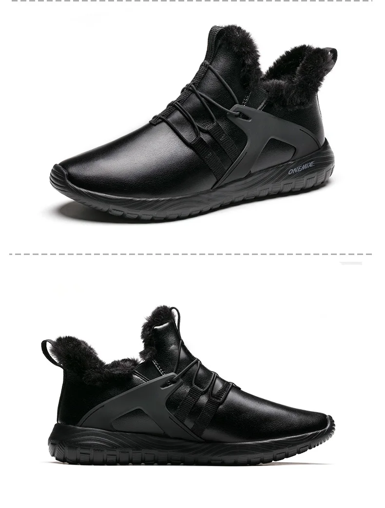 Мужские зимние кроссовки ONEMIX для бега, черные кожаные кроссовки ...