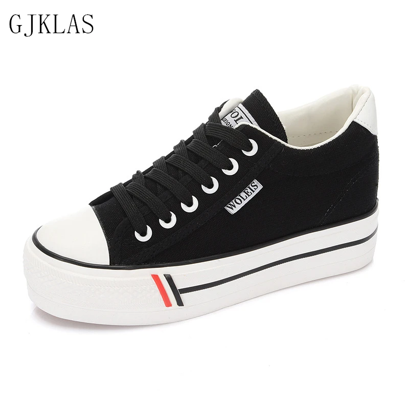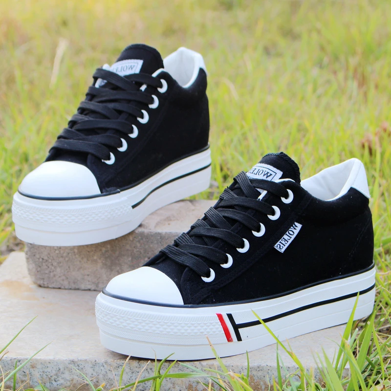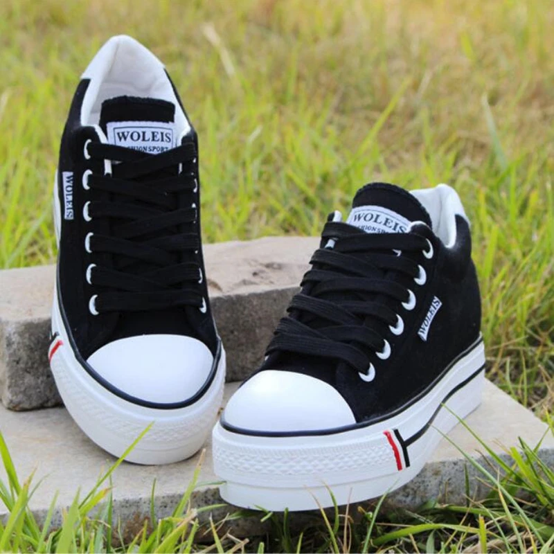 Увеличивающие рост туфли женские синие кроссовки черные на платформе клиновидные туфли на шнуровке весенние осенние парусиновые туфли женские белые кроссовки на каблуке