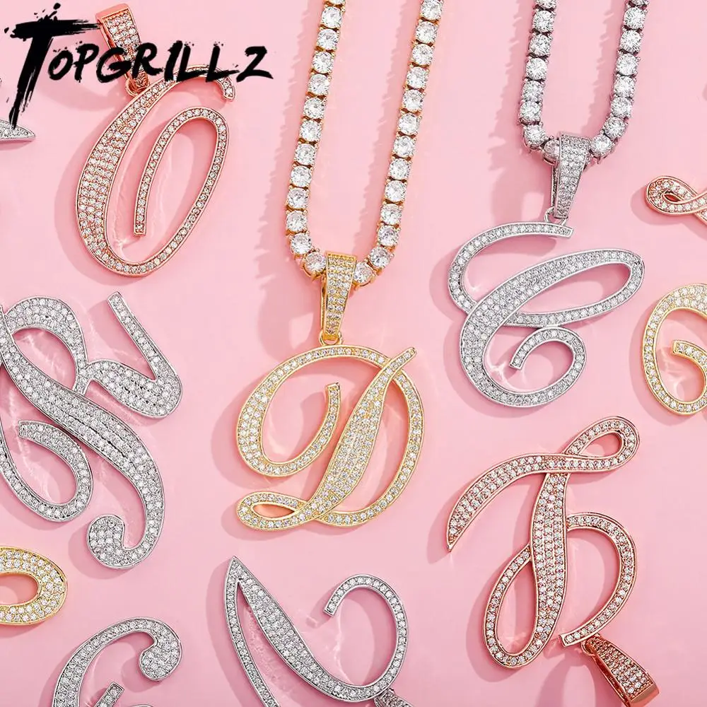 TOPGRILLZ 2020 новые искусственные большие кулоны с буквами большого размера с фианитом и цепью для тенниса в стиле хип-хоп ювелирные изделия в подарок