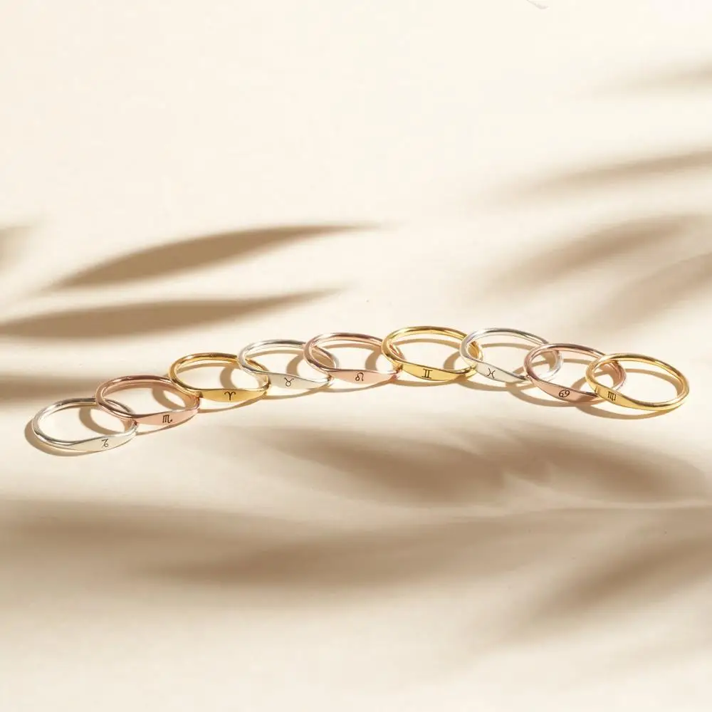 Изящное кольцо Zodia позолоченное гравированное кольцо для женщин дропшиппинг