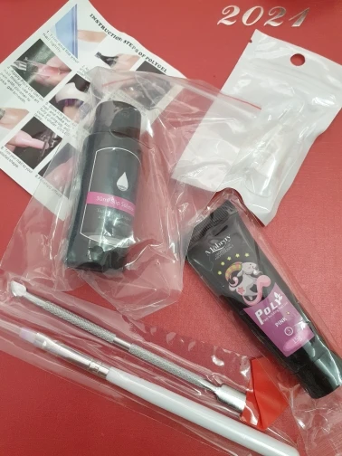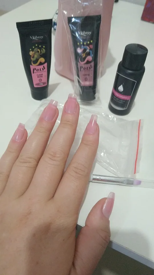 Amazing kit! The process of doing nails is easy and quick, and nails turn out beautiful. The color is very cute, but more barbie pink than natural. Color nude is probably closest to natural. Shipment took about a month to Latvia.