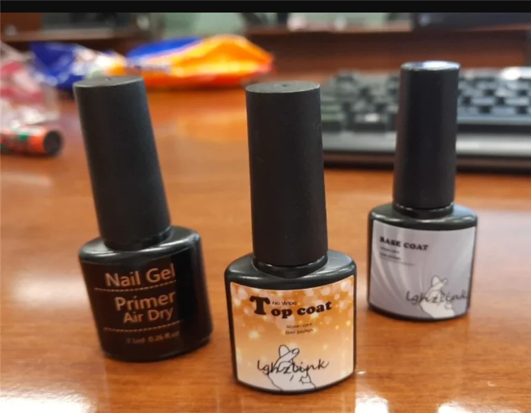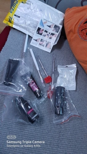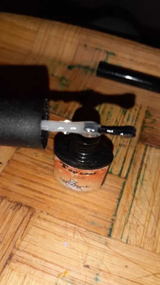 Produits reçus après 2 mois d'attente mais problèmes avec le top coat qui a commencé à ce gélifier sur le pinceau (photo 1) et dans le flacon dès le premier jour d'ouverture alors que je leur refermait bien entre chaque utilisation. Sinon l'effet brillant est bien là (photo 2)