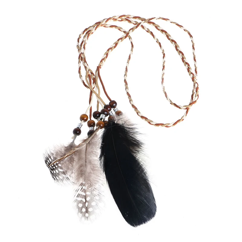 Бохо головная повязка с индийским пером головной убор веревка для волос головной убор Племенной хиппи Вечерние