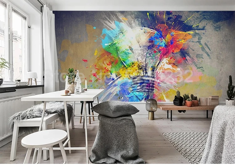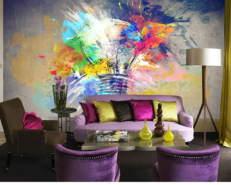 Пользовательские 3D фотообои фрески креативные ручная роспись граффити акварелью живопись лампочки росписи стены Искусство Papel де Parede 3D