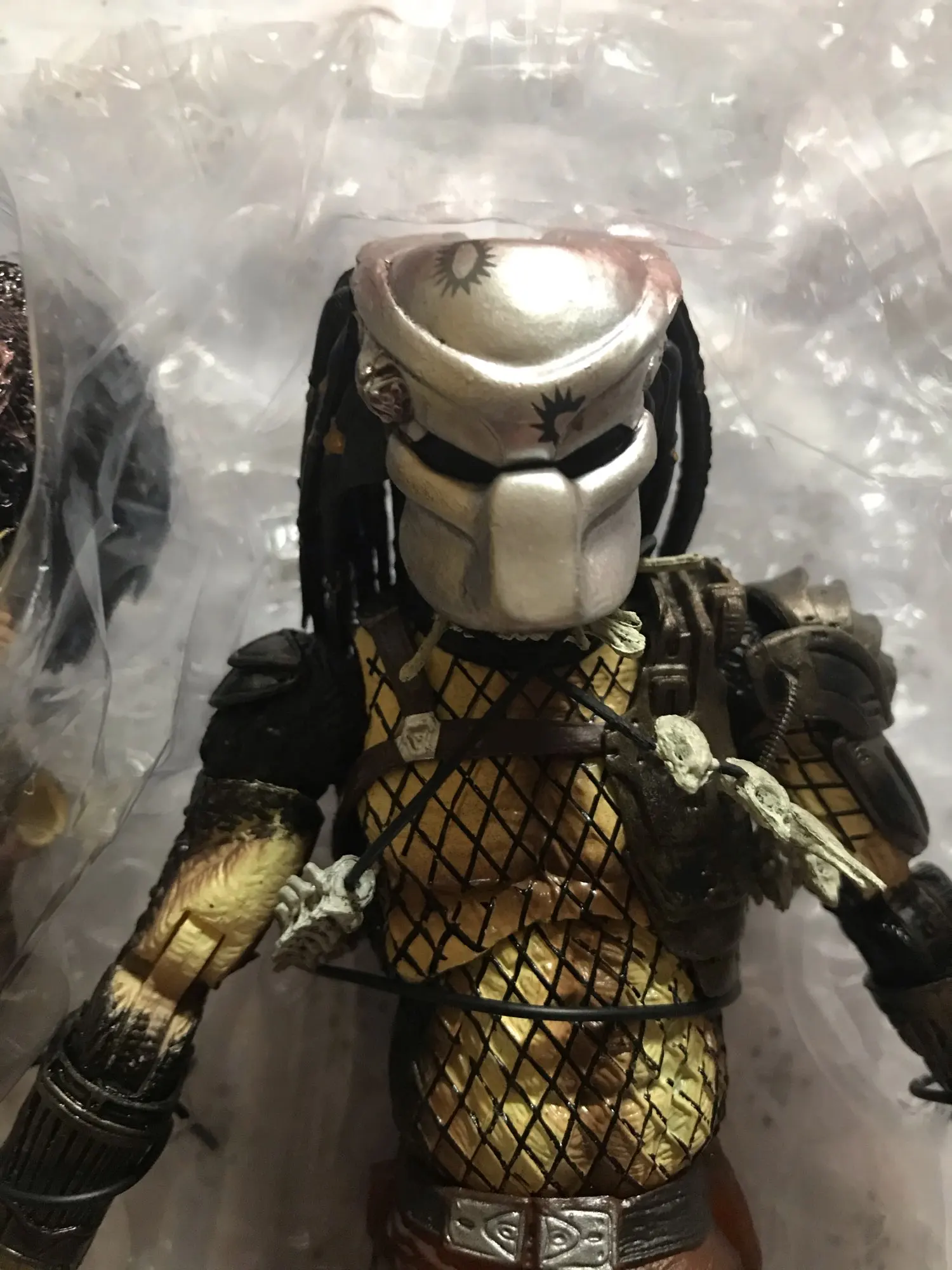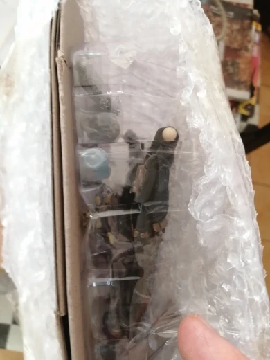 Фигурка прибыла со всей комплектацией, покраской доволен. Правая нога чуть выпирает у основания. Сменная голова держится слабо, нужно усиливать. В остальном норм. Смутил способ упаковки продавца - всё было положено отдельно со сложенной картонной упаковкой. Картонка в итоге целая, а пластиковая часть вся помялась. Всё это завернули в пупырчатую упаковку, а надо было в твёрдую коробку.