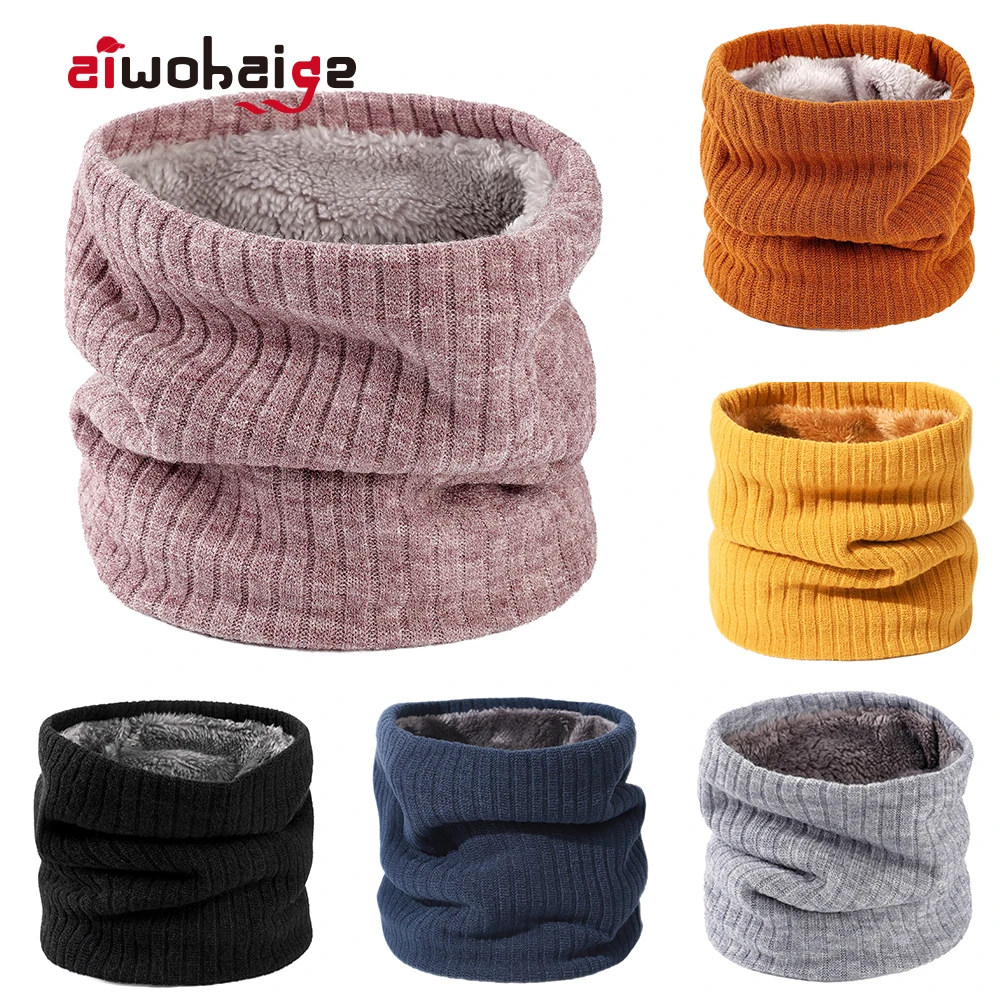 2020 модный шейный платок зимний теплый шарф-кольцо для женщин и мужчин однотонные полосатые вязаные шарфы детские плотные шерстяные шарфы-воротники