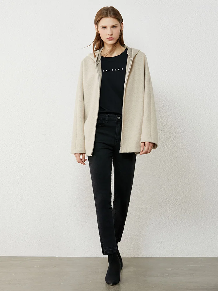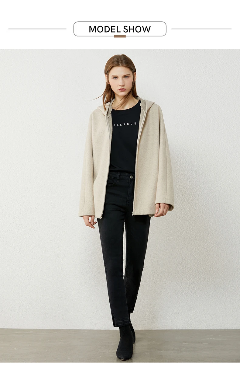 Amii минимализм Осень Зима Повседневная Женская куртка модная с капюшоном однотонная с длинным рукавом Свободная Женская куртка спортивная куртка топы 12020315