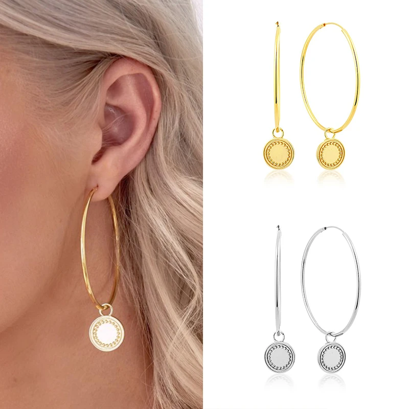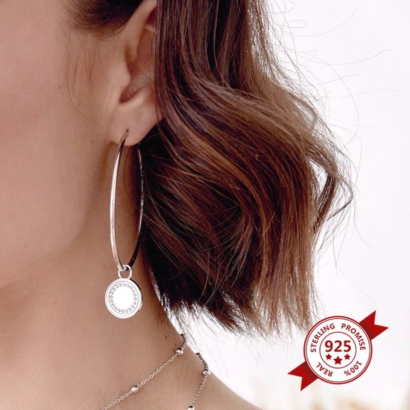 Серьги-кольца из стерлингового серебра 925 пробы, Гладкие большие круглые серьги для женщин, 57 мм/27 мм, клипсы для ушей, серьги в стиле панк, модные ювелирные изделия