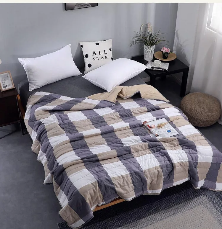 Промоакция, простые летние одеяла из промытого хлопка в клетку, дыш...