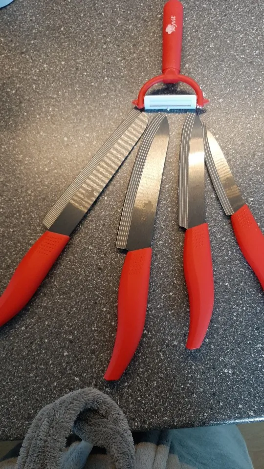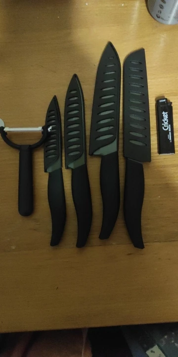 Ножи меньше, чем ожидалось, я думаю, что это хорошо, просто нарезать овощи и мелкие предметы. Я очень разочарован