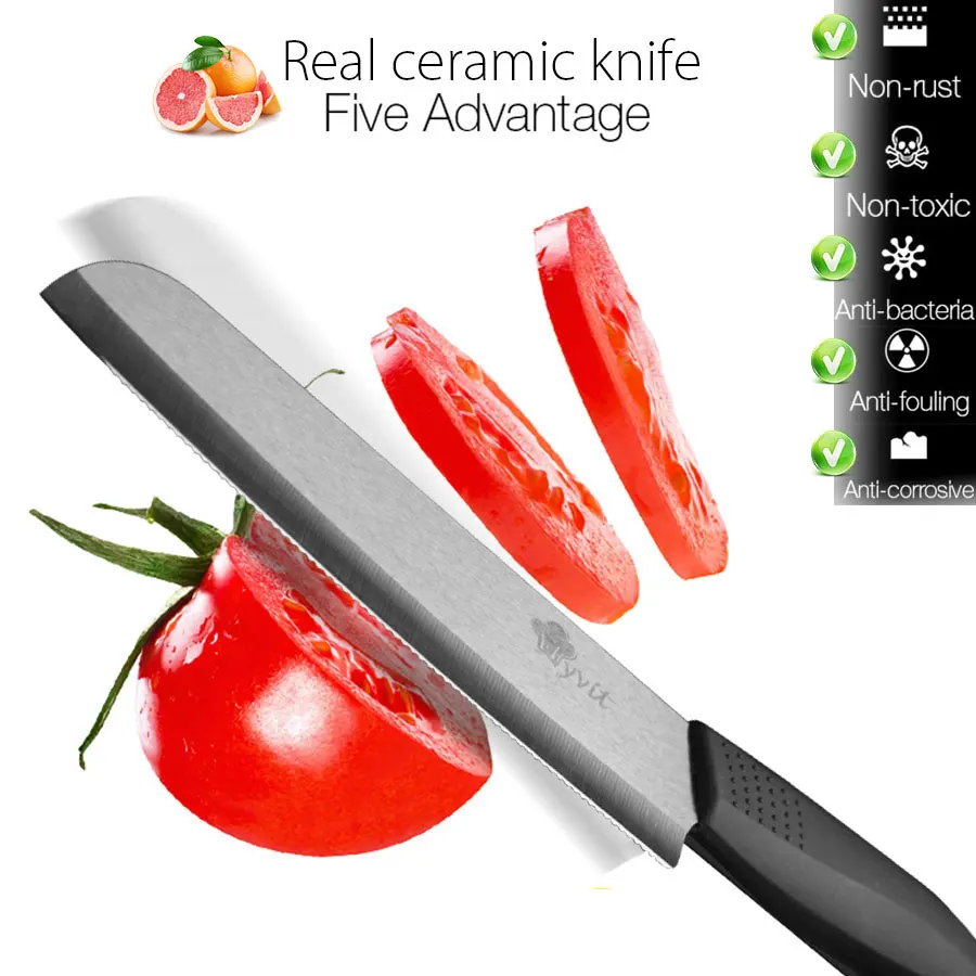 Керамический нож, 3, 4, 5, 6 дюймов, кухонные ножи с овощечисткой, зубчатый набор для хлеба, циркониевое черное лезвие, нож шеф-повара для фруктов, инструмент для повара