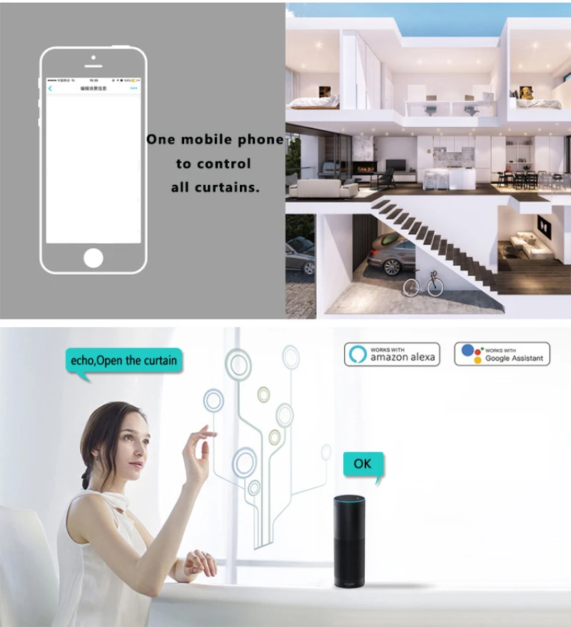 【Связь с другими смарт-устройствами】Он может быть подключен к другим смарт-устройствам, чтобы реализовать удобную умную жизнь вместе. Домашний режим может быть создан и соединен с другими смарт-устройствами, чтобы автоматически открыть шторы, как только вы идете домой.