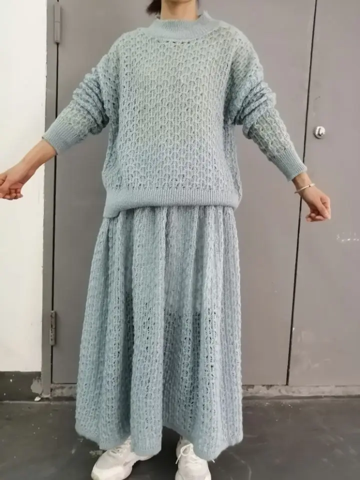 Новинка, костюм-свитер, платье, белый кавайный свободный ажурный вя...