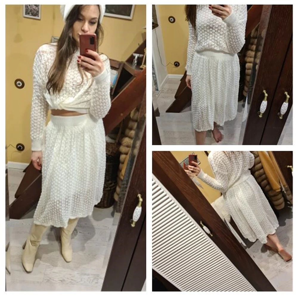 Женский трикотажный Костюм-двойка, белая юбка, свободный ажурный ко...