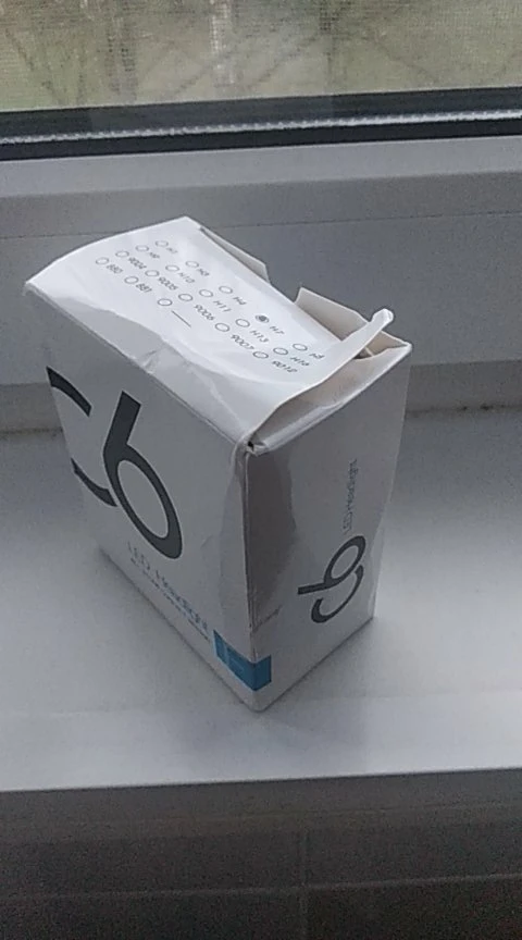 Коробка пришла в смятом виде, могли бы поставить некоторые защитные пузырьки, но в противном случае лампа работает нормально