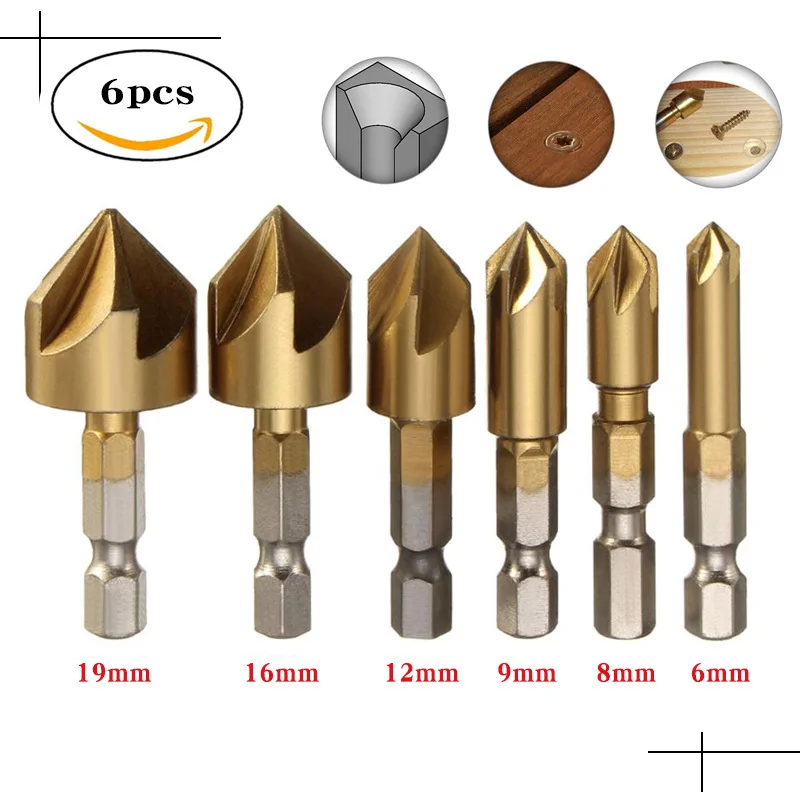 1 комплект HSS шестигранный хвостовик Зенковка фаски ядро сверло шестигранный хвостовик 90 градусов деревообрабатывающий фаски Резак 6-19 мм электроинструмент