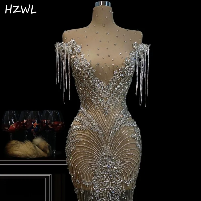 Шикарные Кристаллы платья знаменитостей, Русалка Мини Иллюзия красн...