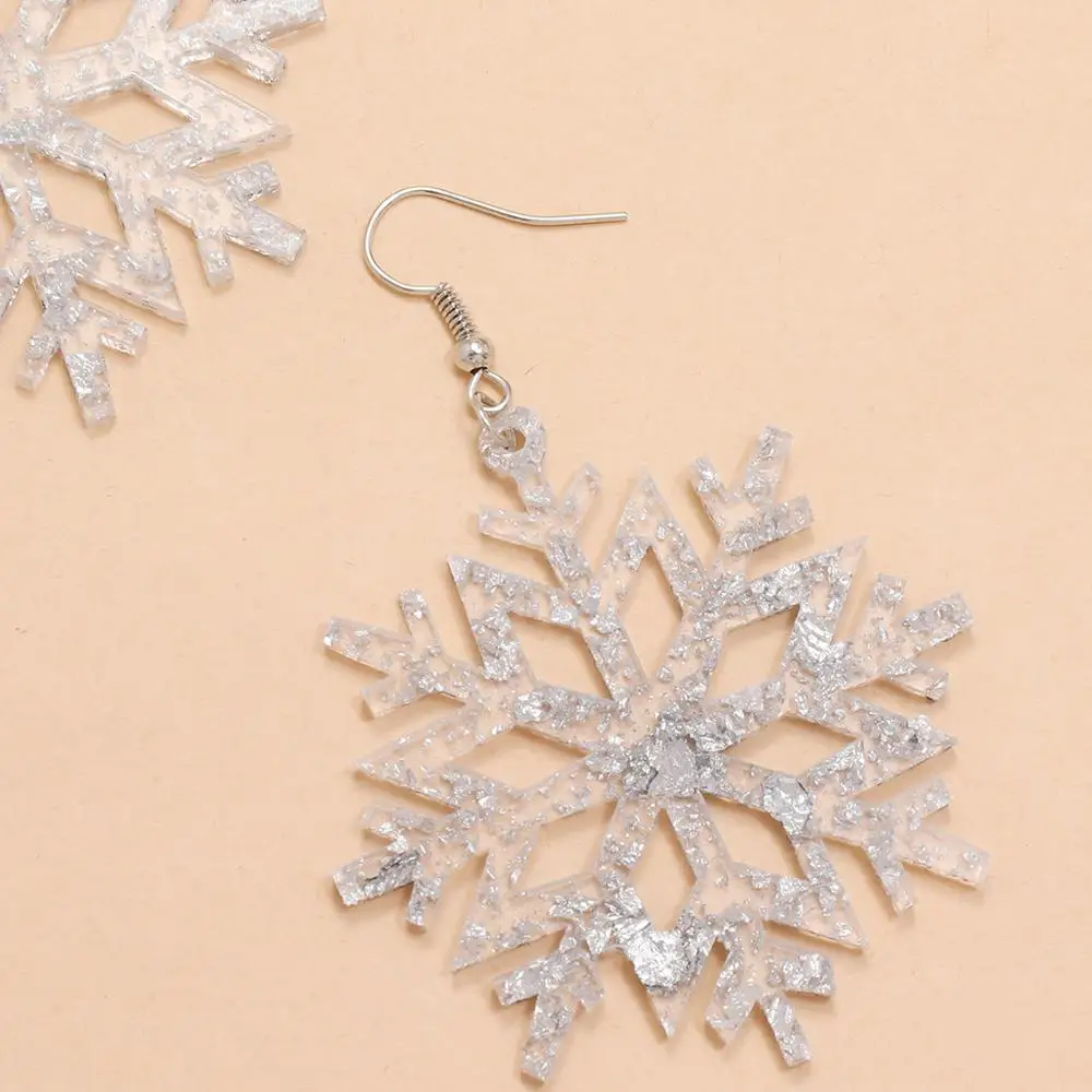 Женские акриловые серьги-снежинки, простые блестящие серьги серебристого цвета с кисточками, гометрические ажурные Висячие серьги, подарок на Рождество