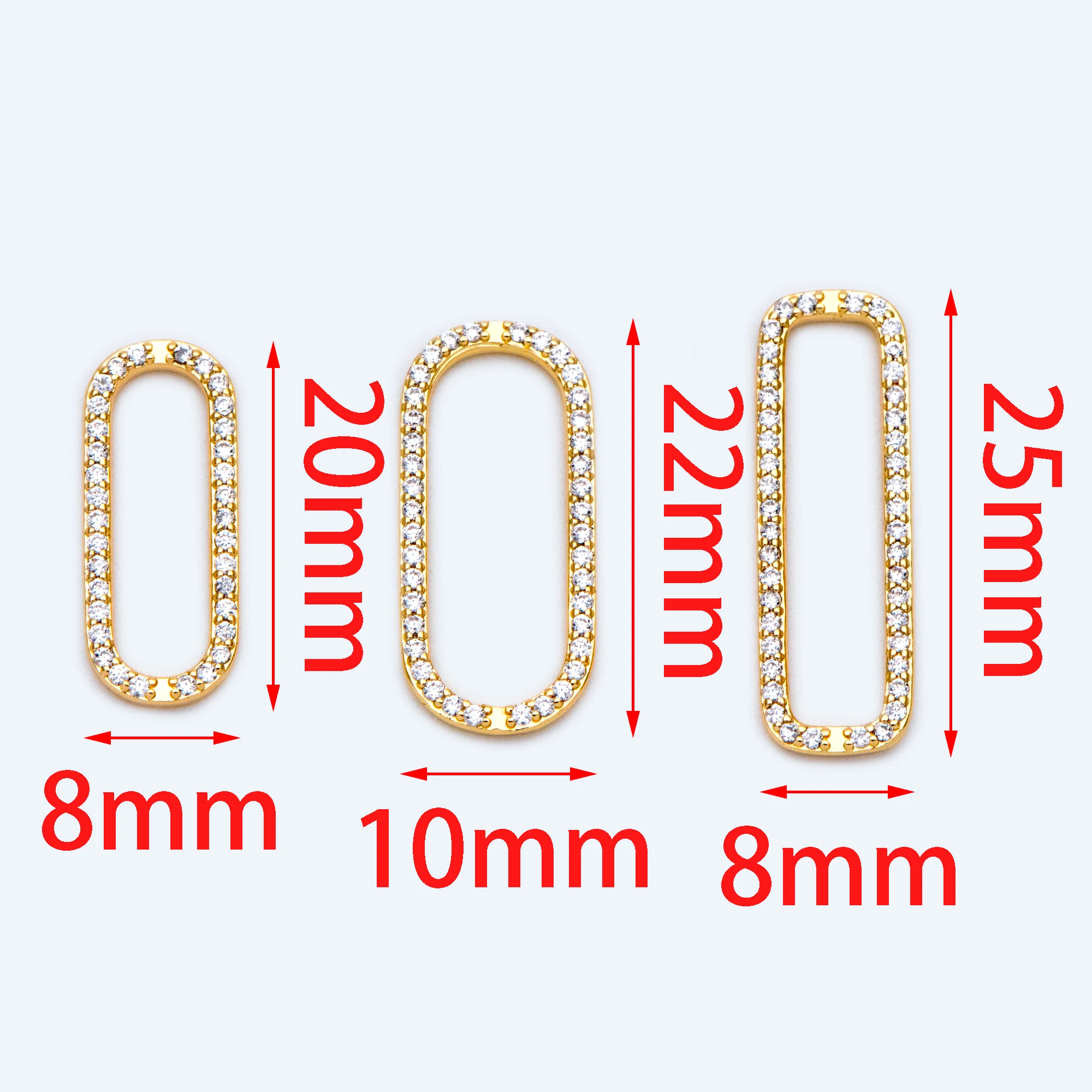 4 шт., покрытые фианитом золотые овальные искусственные кольца, Длинные овальные кольца из латуни, круглые подвески-соединители для изготовления ювелирных изделий