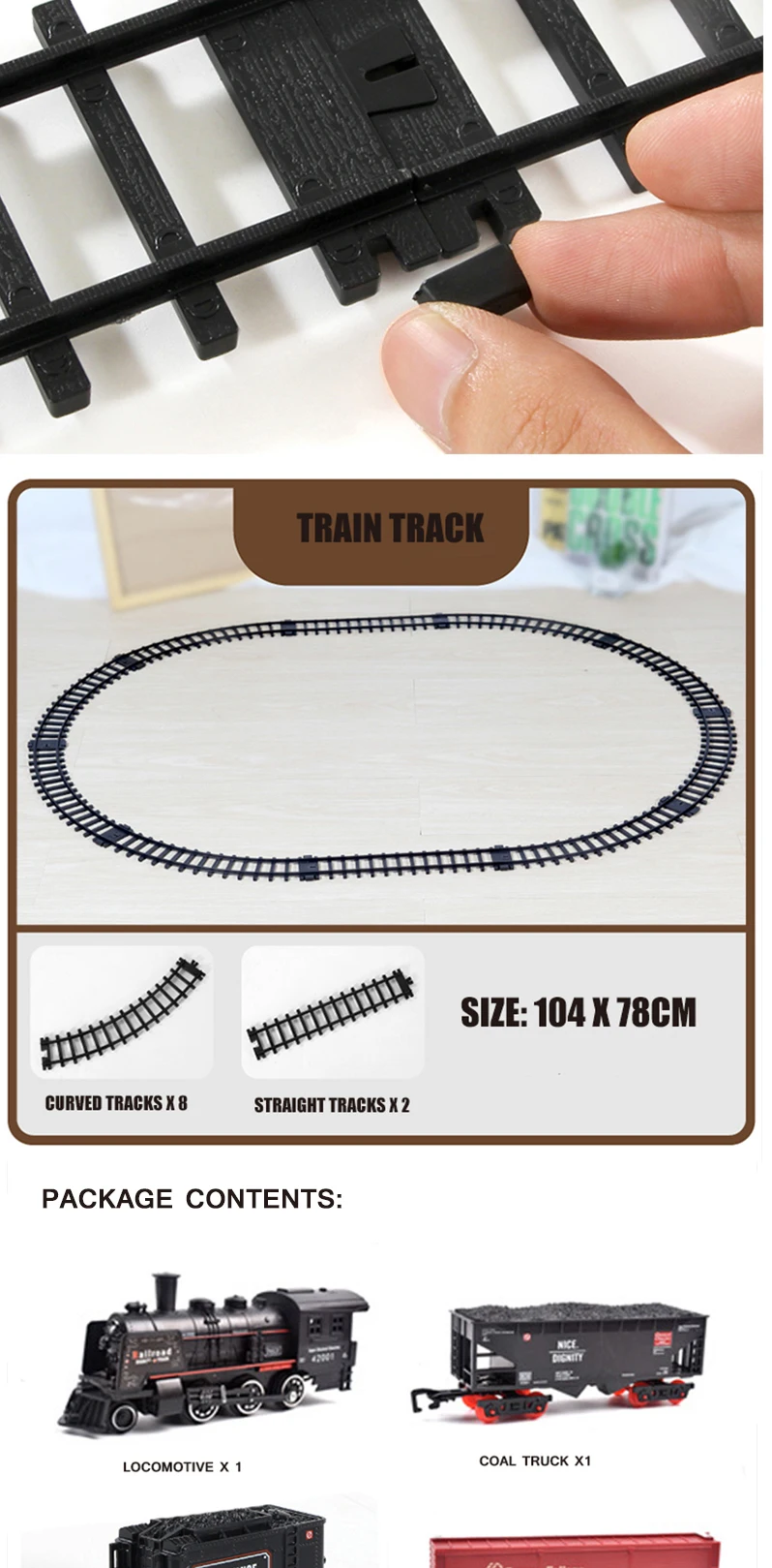 Доставка в Санкт-Петербург 87 дней ( почти 3 месяца) . Вскрыли долгожданное почтовое отправление. Товар не соответствует описанию - Отсутствует сама железная дорога, нет жидкости для образования пара в трубе локомотива. Ребенок в шоке. Задает вопрос - как и по какой дороге будет двигаться поезд,?
