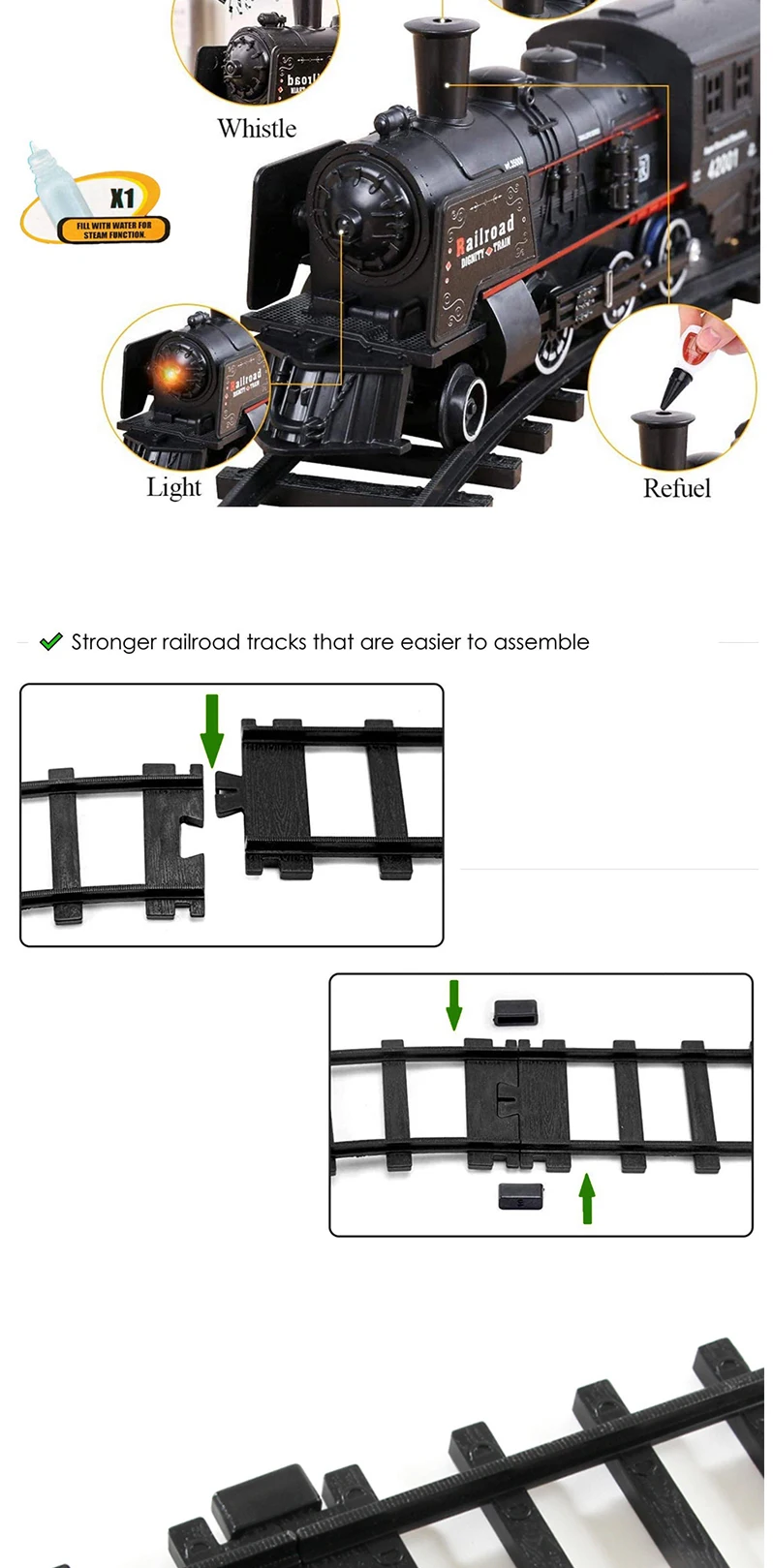 Очень хороший поезд, прибыл очень быстро. Вид как в описании. Единственное, что пар действительно не работает, кроме того, что все идеально.