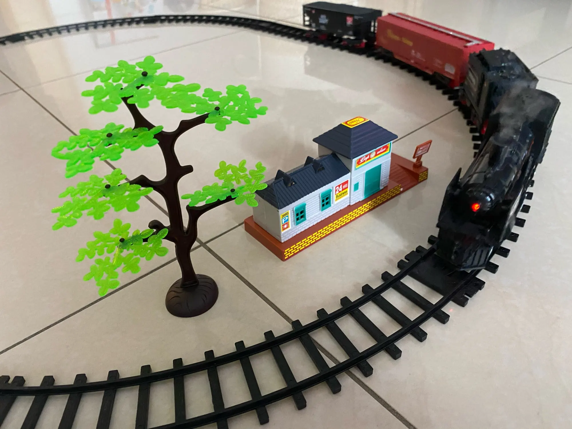 Идеально, размер, качество и очень хорошо упакованы. Это красиво. Он прибыл раньше, чем ожидалось. Дым обильный и звук очень сильный, включая дерево и железнодорожную станцию. Идеально подходит для этих рождественских свиданий для ваших детей или просто для украшения.