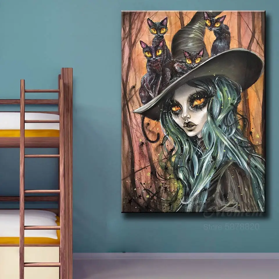 Картина из страз Ever Moment, квадратная, черная ведьма, кошки, 5D, ручная работа, украшение для подарка на Хэллоуин 5L255