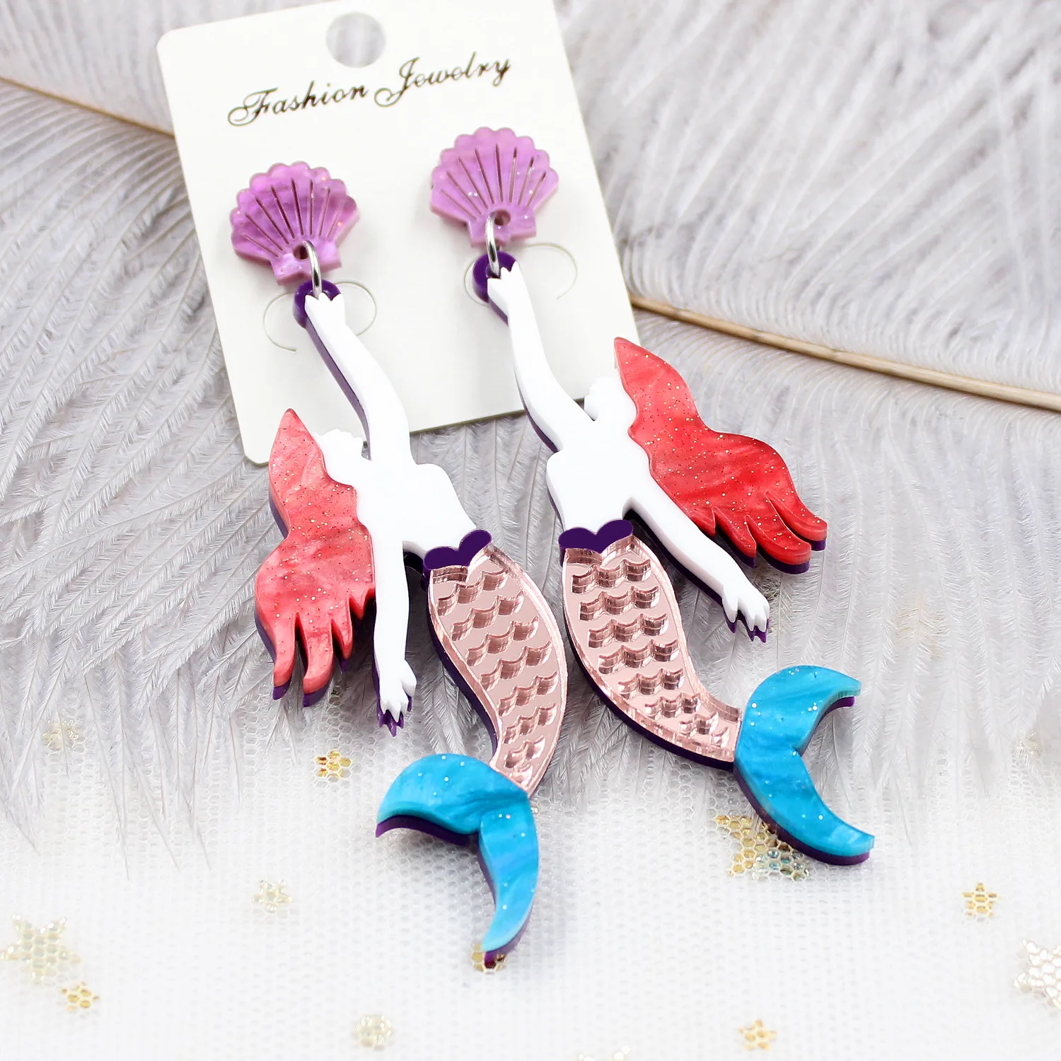 Блестящие акриловые серьги Русалочки для женщин и девочек, модные висячие серьги с кисточками в виде морских ракушек, блестящие серьги Brincos Femme
