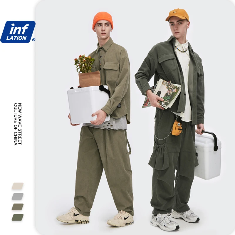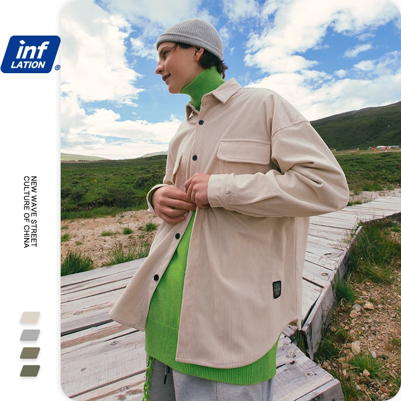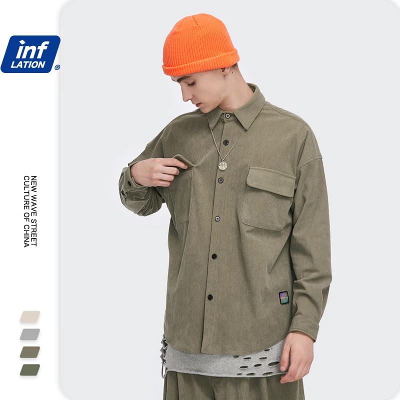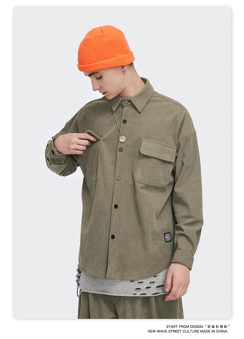 Рубашка Вельветовая Мужская, свободного кроя, с карманами спереди, в стиле Харадзюку, 2021 Вт, большого размера, 2102