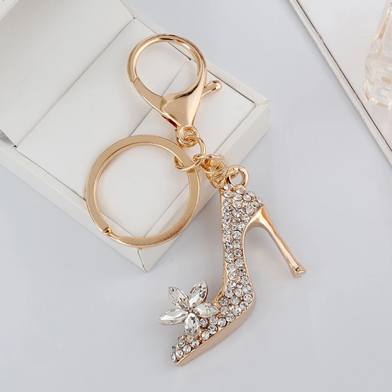 Брелок на высоком каблуке со стразами и кристаллами, автомобильный брелок, декоративный брелок из сплава