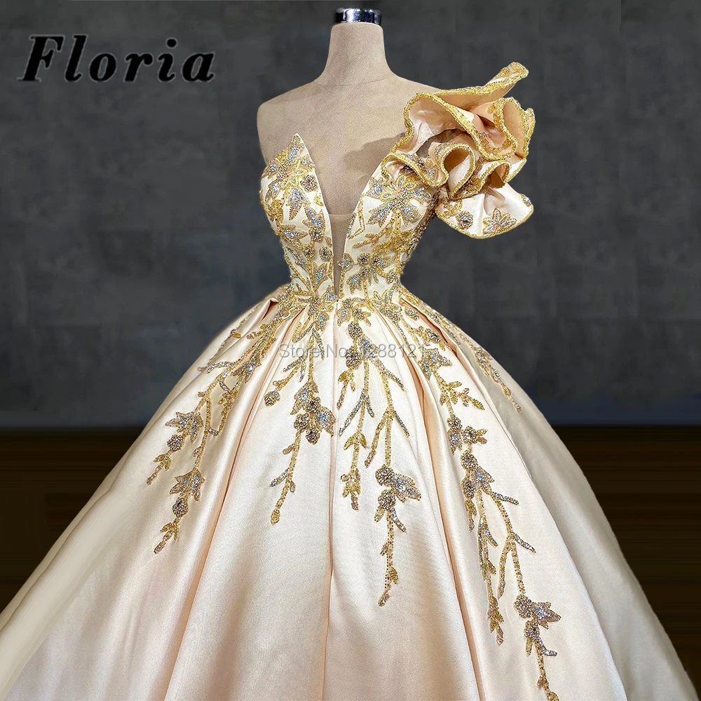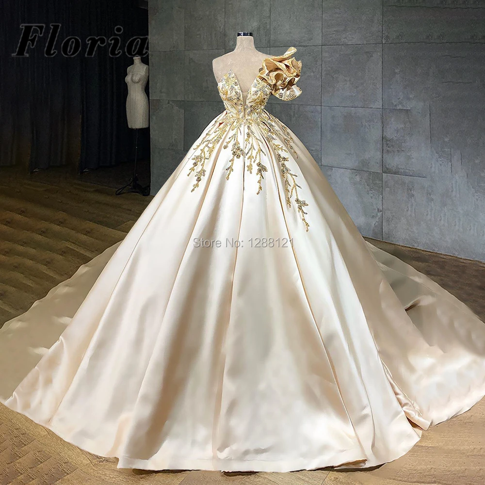 Пышные свадебные платья со шлейфом, платья невесты из Саудовской Аравии с бисером и кристаллами, 2021 Robe De Mariee Dubai, женские свадебные платья с V-образным вырезом