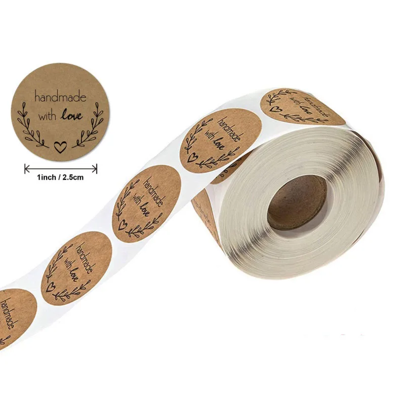 500 шт.рулон, крафт-бумага с этикеткой ручная работа с любовью и красным сердцем