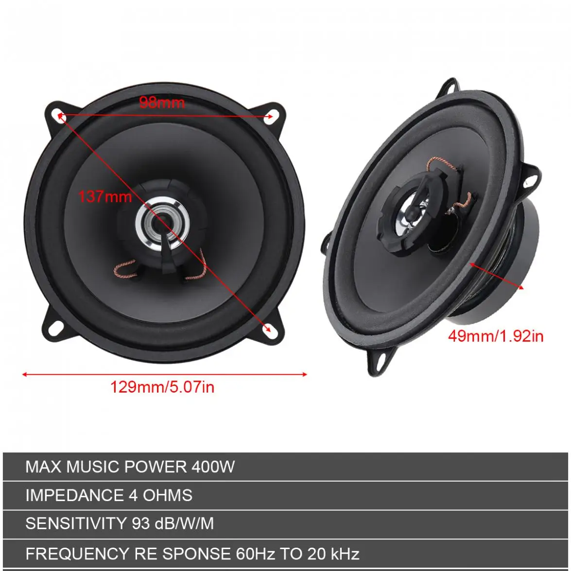 Динамик коаксиальный автомобильный, 400 Вт, 1 шт., 5 дюймов