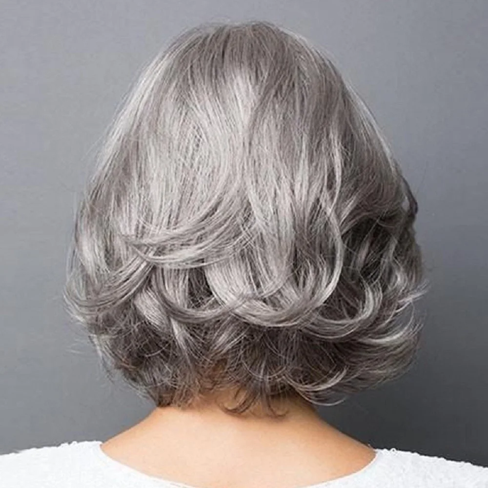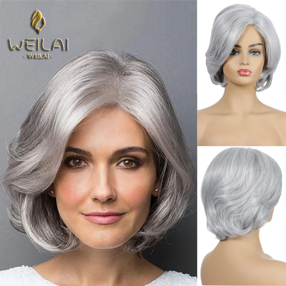 WEILAI женский парик, серая, белая, с эффектом омбре, синтетические Короткие Многослойные вьющиеся волосы, пухлые челки, термостойкие