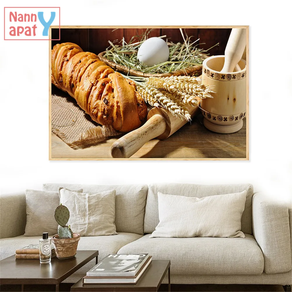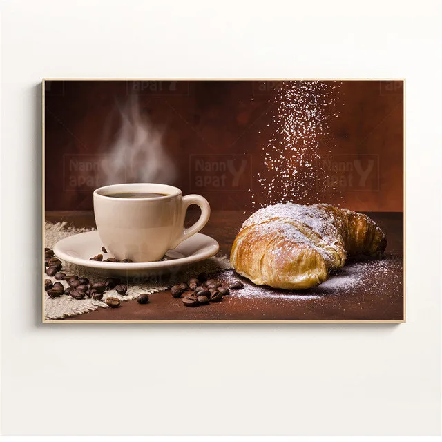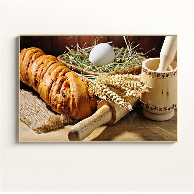 Пшеничный хлеб, кофе, еда, холст, картина, Современное украшение дл...