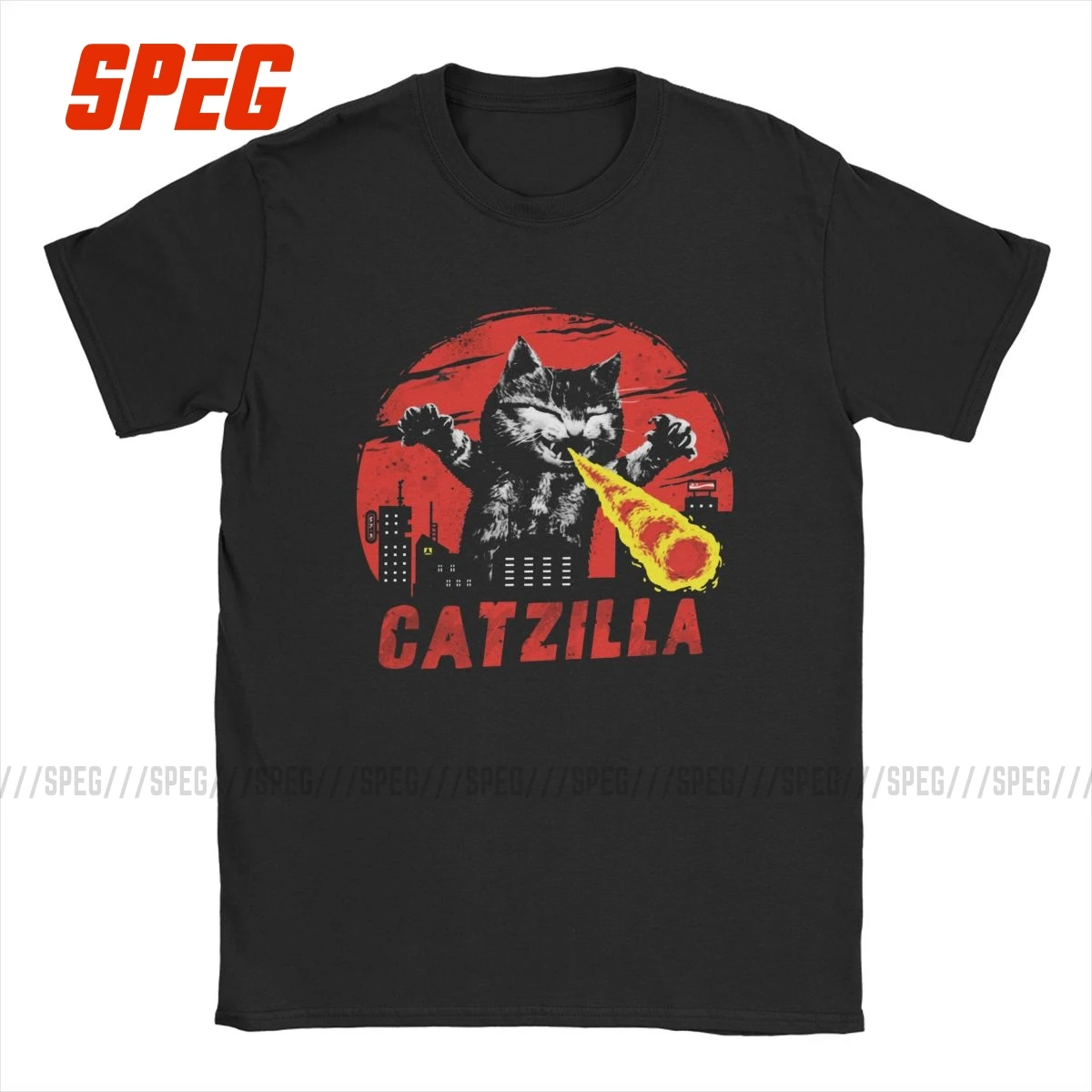 Humor Catzilla с капюшоном Китти Кэт монстров футболка для мужчин с круглым вырезом натуральный хлопок футболка с коротким рукавом футболки для девочек подарком для друзей и близких размера плюс 6XL одежда