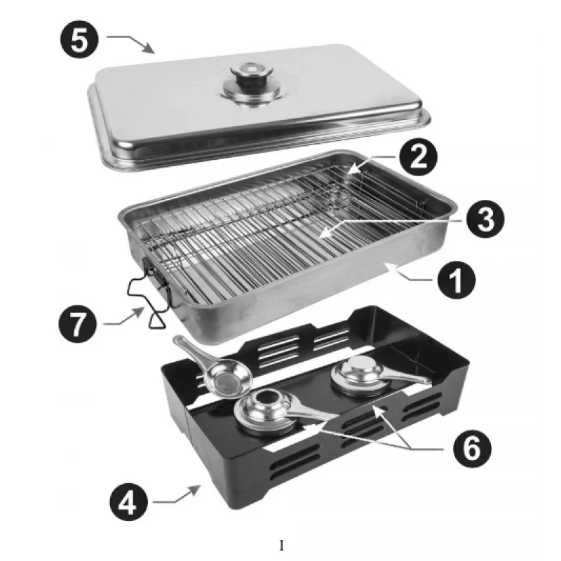 Коптильня оборудована термометром,который позволяет регулировать температуру в течении всего процесса копчения.В качестве топлива можно использовать жидкость для розжига древесного угля или топливо-гель для горелок(продаются в магазинах и на рынках). Описание и инструкция на русском языке. Габариты-высота 21 см глубина 27,5 см длинна 42,5 см вес 3,10 кг емкость например для 4 форелей.Содержимое коробки:- противень,- нижняя и верхняя решетка,- полочка- металлическая решетка,- крышка со встроенным термометром (0-100oC),- двух конфорочная плита,- металлический корпус