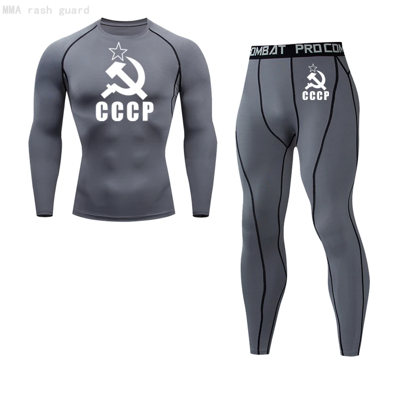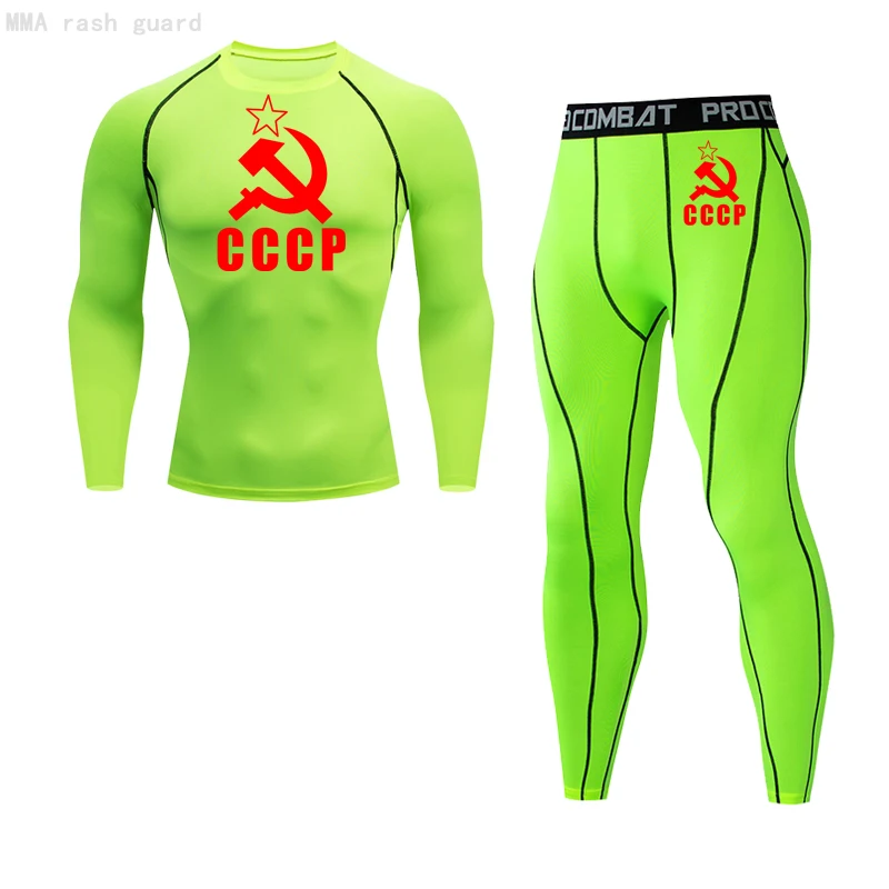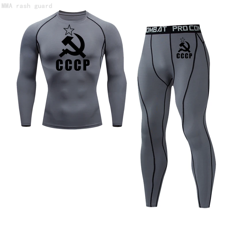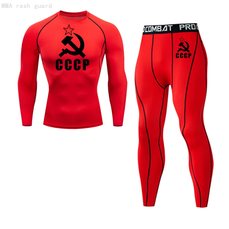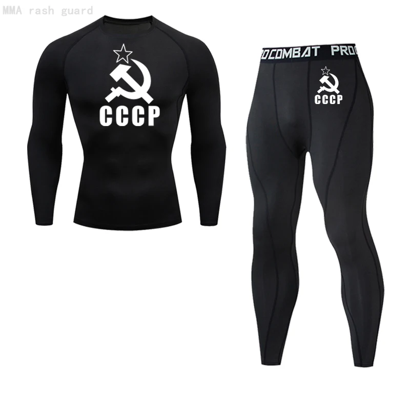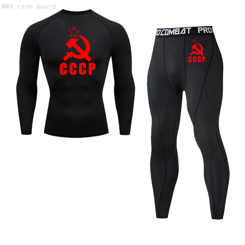 Мужская одежда, комплекты для ухода за кожей для бега, зимнее термобелье для фитнеса, компрессионные штаны, футболка для фитнеса CCCP, мужские черные колготки