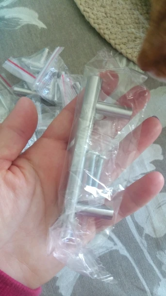 Я связался с продавцом, потому что мне нужен товар, который будет отправлен как можно скорее. Они ответили, и он был отправлен довольно быстро. Проблема только в том, что винты для больших ручек кажутся слишком длинными. Это не большая ошибка, но приятно узнать-для продавца и для клиентов. Вместо этого я использовал винты Pz2. В противном случае я очень доволен. Теперь моя кухня выглядит гораздо более современной. Я добавил изображение винта, который я использовал вместо него (чем больше). Честно говоря, до сих пор одна из лучших вещей, которую можно получить на aliexpress.