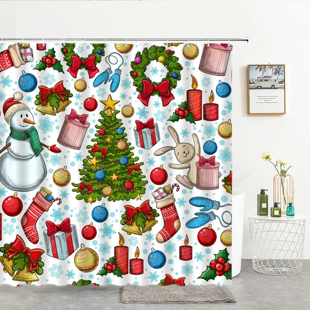 Счастливого Рождества ванная комната занавеска для душа счастливый новый год Санта красный узор водонепроницаемые занавески украшение Печатный душ 180x240