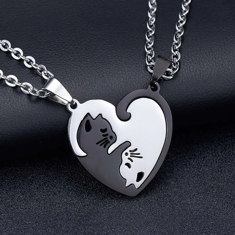Корейская мода Нержавеющая титановая сталь Пара совпадающее сердце кулон ожерелье для женщин мужчин лучший друг ювелирные изделия подарок черное золото