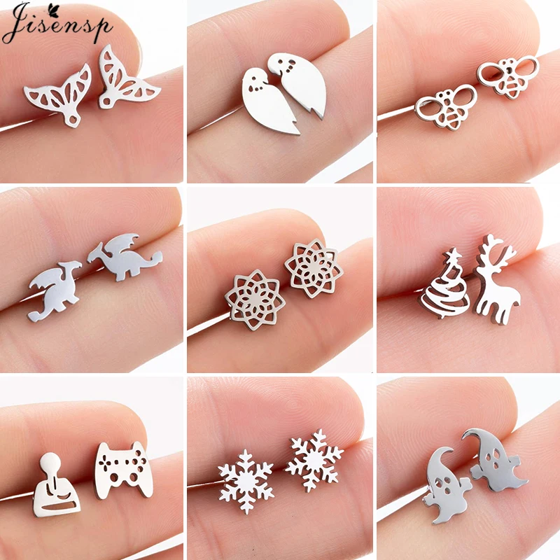 Минималистичные серьги из нержавеющей стали для женщин 2022, в стиле хип-хоп, геометрические, снежинки, призрак, серьги с драконами, рождественские украшения, оптовая продажа